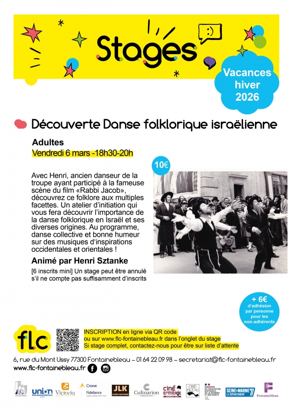 Avec Henri, ancien danseur de la troupe ayant participé à la fameuse scène du film «Rabbi Jacob», découvrez ce folklore aux multiples facettes. Un atelier d'initiation qui vous fera découvrir l'importance de la danse folklorique en Israël et ses diverses origines. Au programme, danse collective et bonne humeur sur des musiques d‘inspirations occidentales et orientales ! > Inscription en ligne via ce LIEN. [Si stage complet, contactez-nous pour être sur liste d'attente]